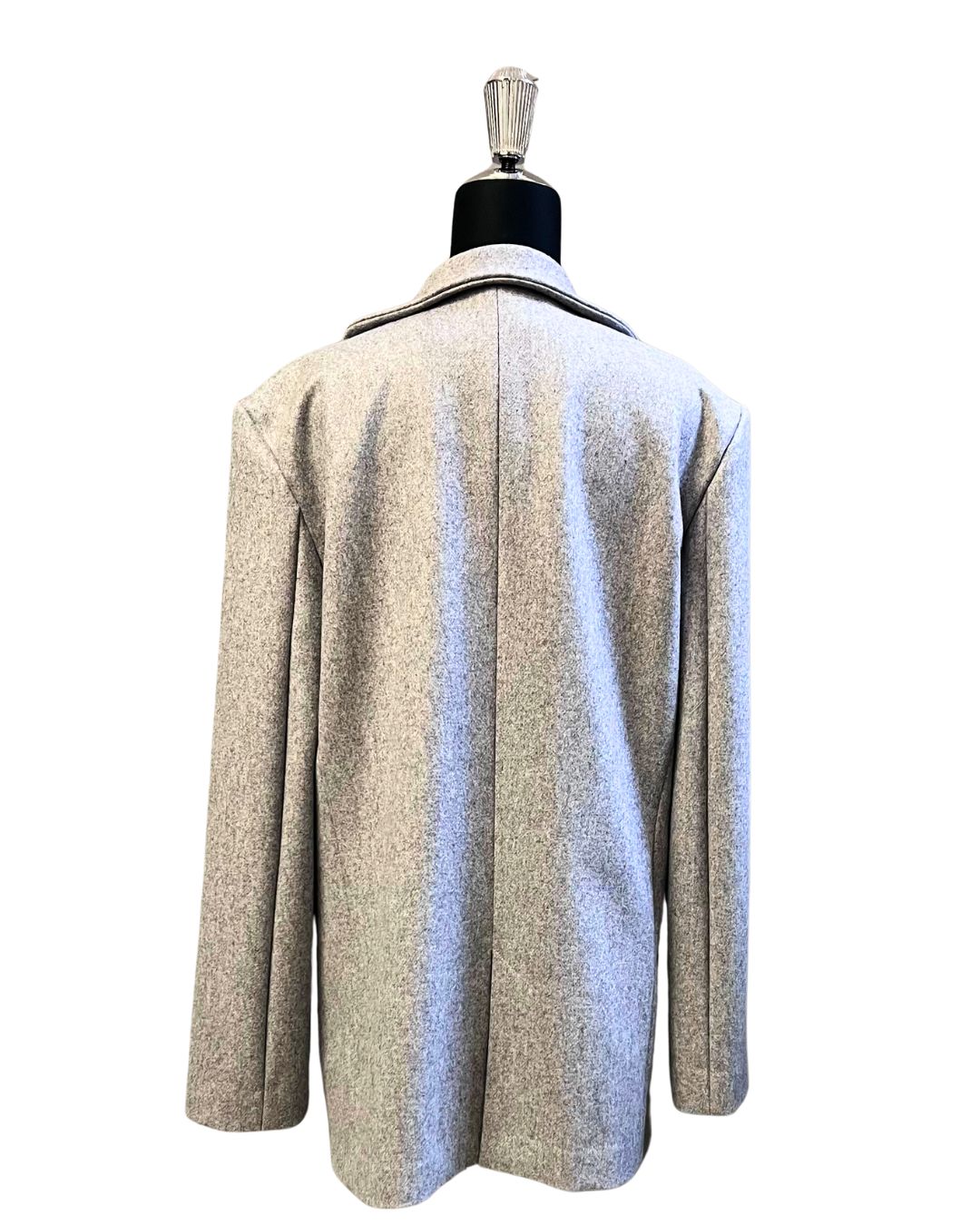 Dettagli prodotto: giacca oversize in lana. Struttura sartoriale, completamente foderata con spacchetto centrale dietro. Nessuna tasca, nessun bottone – essenziale e contemporanea. Da abbinare a pantaloni, gonne, abiti lunghi o linee pulite