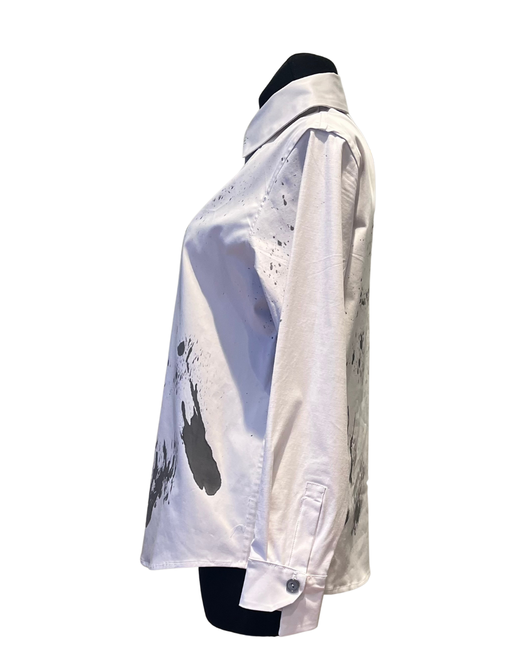 Lea nasce da un attimo di istinto e cura: ogni camicia è dipinta a mano, schizzi e colature come pennellate su una tela. Nessuna è identica all’altra: ciò che vedi è un istante irripetibile, fermato sul tessuto. È la camicia per chi ama l’imperfezione poetica, per chi sceglie capi che raccontano qualcosa in più di un semplice outfit.
