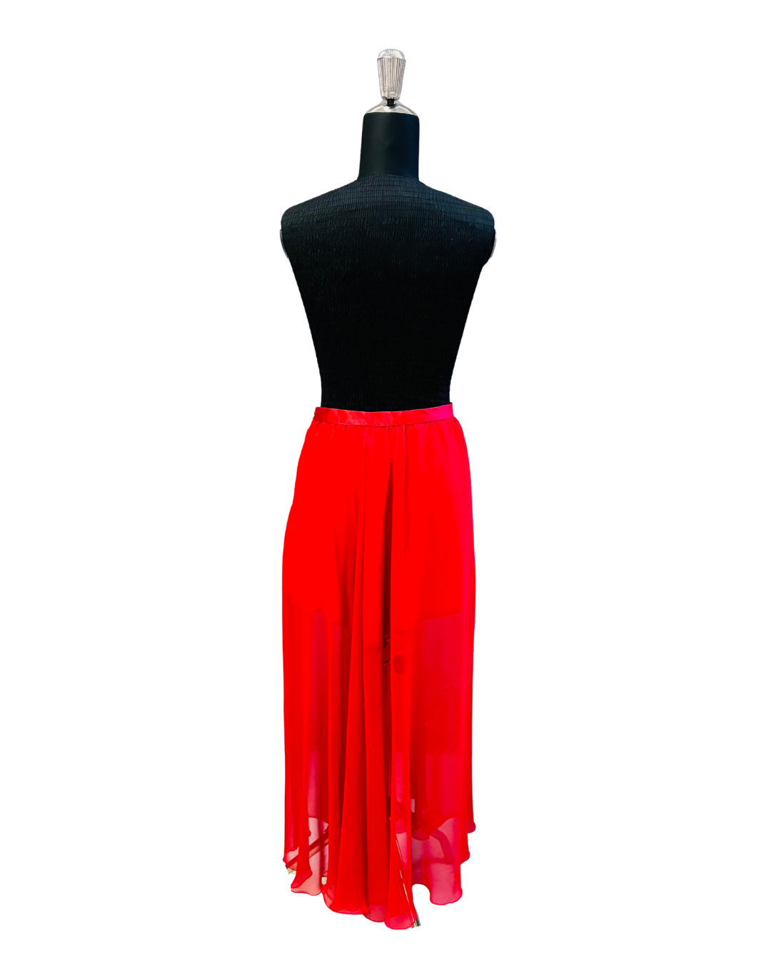Carmen è fatta per chi ama muoversi e sentirsi vista, ma con eleganza. È una gonna che vive d’aria: il suo chiffon misto crea un movimento continuo, morbido, quasi musicale, e ad ogni passo disegna una scia di luce. Leggera e fluida, non appesantisce mai: accompagna il corpo, lo valorizza, lo rende protagonista con naturalezza.